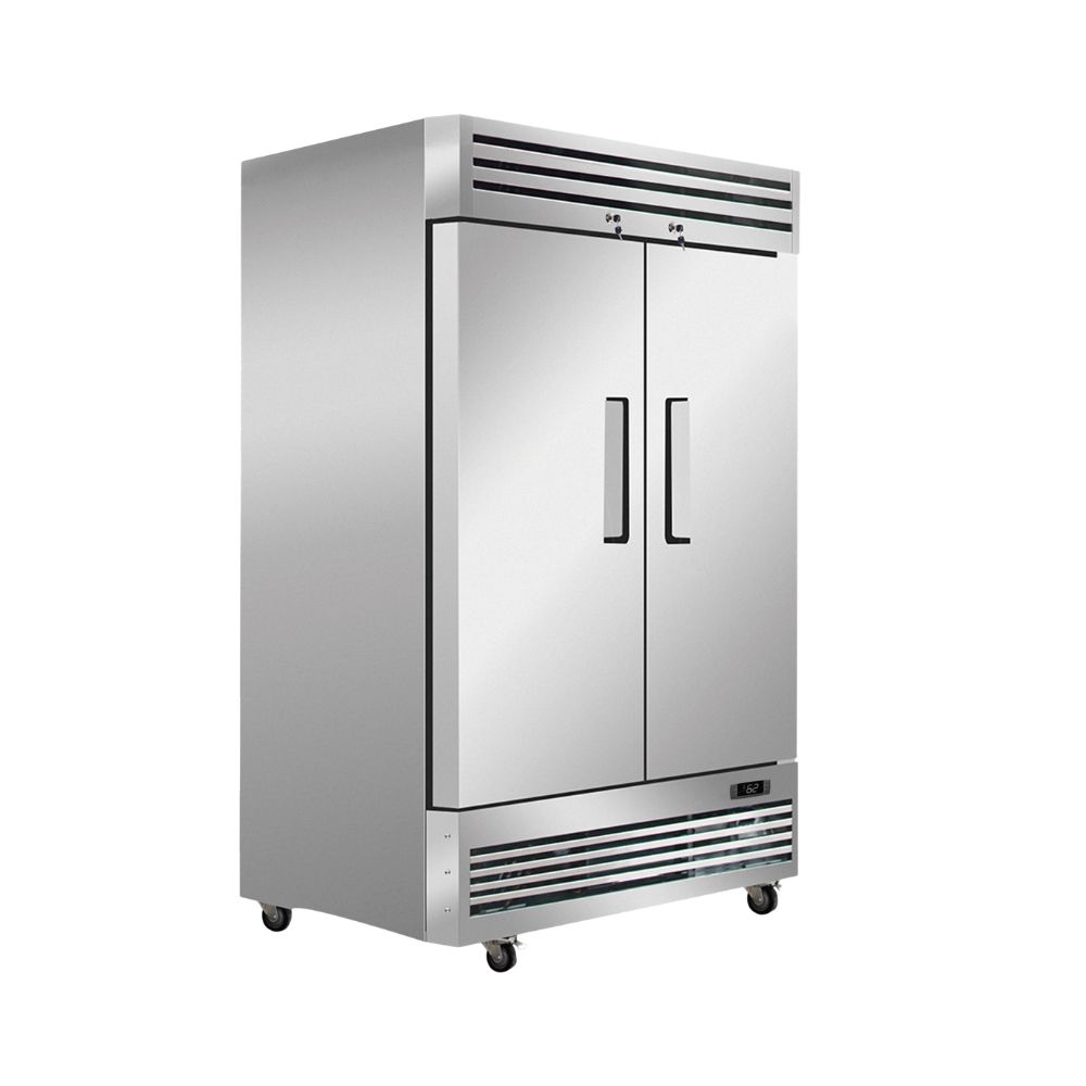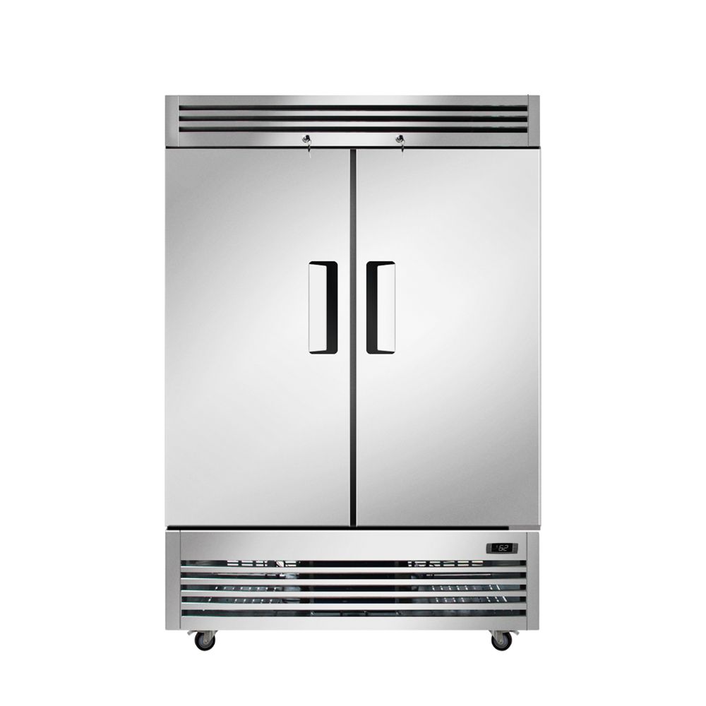 Congelador Vertical Industrial de 2 Puertas. Equipo de alta capacidad con 1186 litros, diseñado para conservación profunda. Opera con refrigerante ecológico R290 a 115V / 60Hz monofásico y está fabricado en acero inoxidable. Dimensiones: 1371 x 810 x 2060 mm.