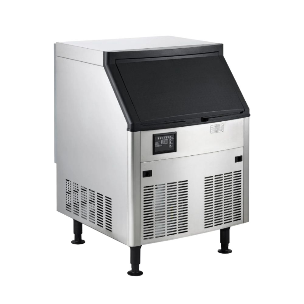 Máquina de Hielo Autocontenida de Alto Rendimiento. Diseñada para operaciones exigentes, con una capacidad de producción de hasta 127 kg por día y 36 kg de almacenamiento integrado.